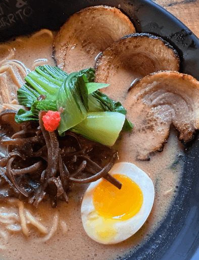 comforting ramen with vibrant sushi burritos.